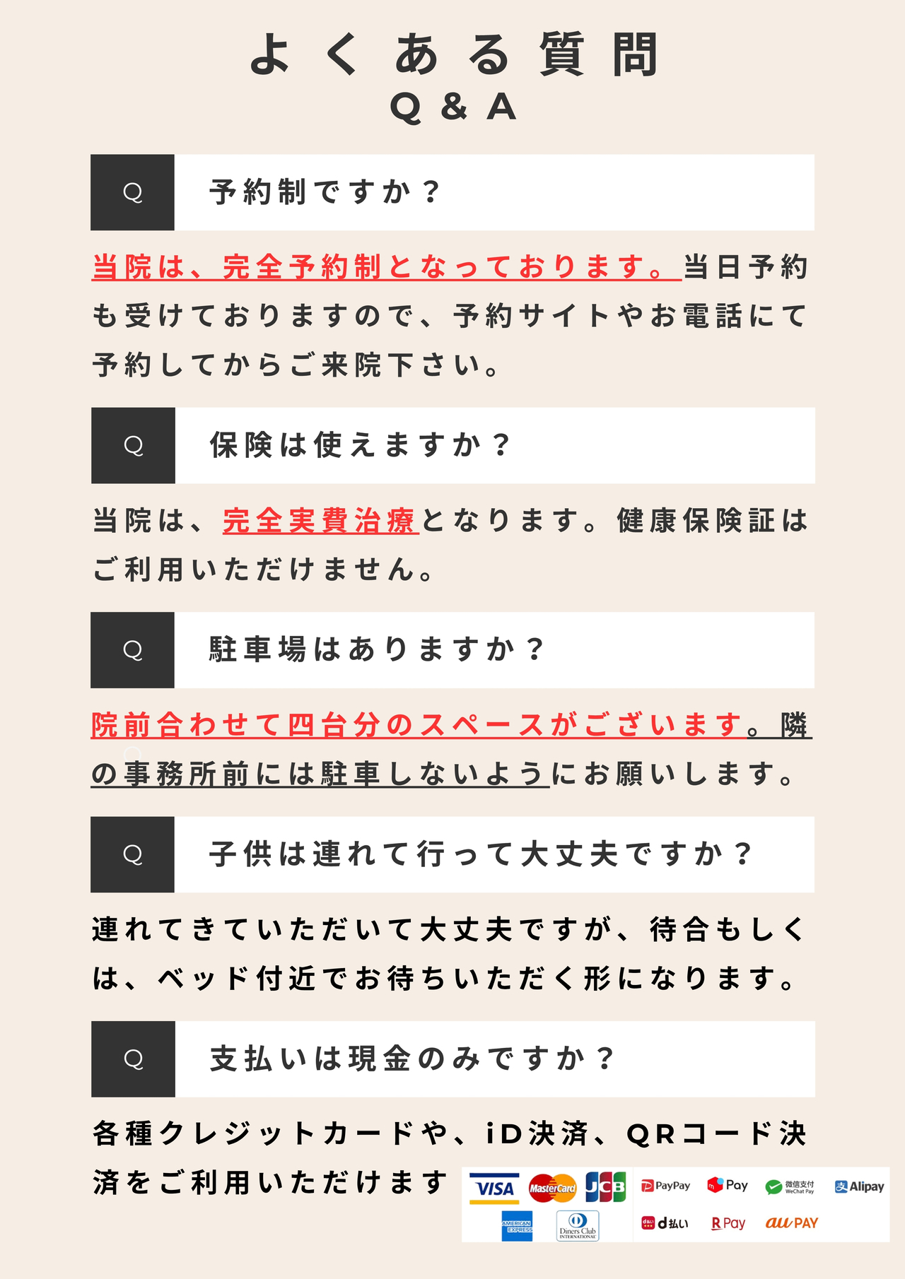 駐車場:院前に2台あり 各種カード・QRコード決済、iD決済可能